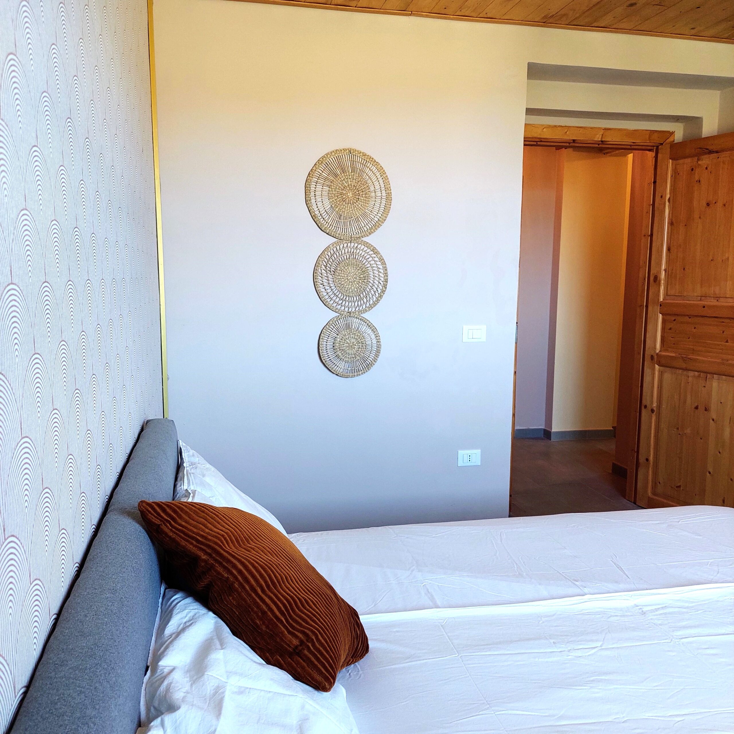 Apartment Olive is a ground-floor apartment for 4 to 5 people. Formerly a barn, it has been completely renovated, but it still has many of its original features. It has a private entrance, and from your terrace, you have a stunning view of the valley. There is a fully equipped, spacious kitchen/diner with a dishwasher and oven, a bathroom, and two bedrooms. One room with a queen size double bed and one room with two single beds. Both bedrooms have air conditioning. There is a comfortable, large sofa bed in the livingroom for an other person.